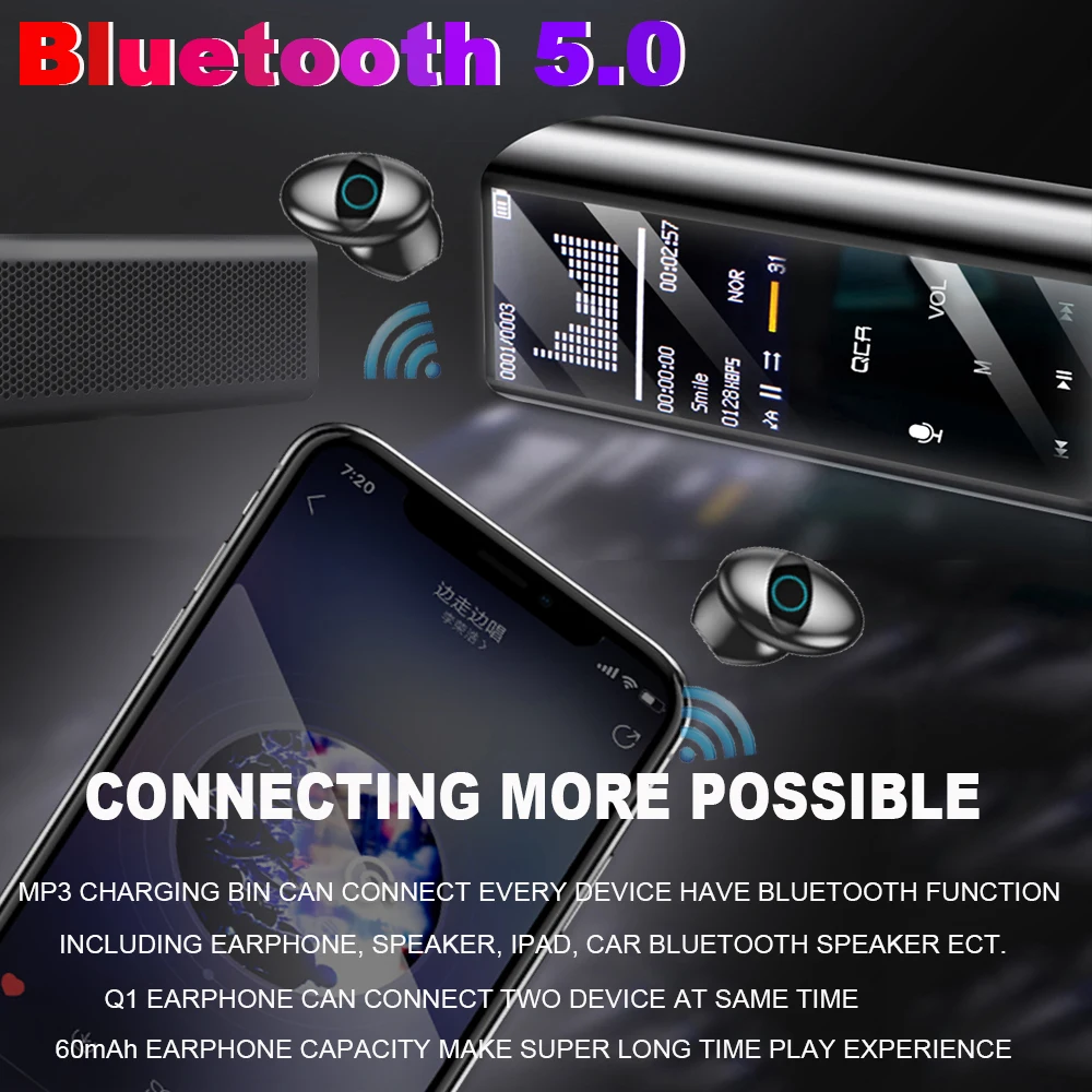 Q1Multi-function MP3 Player Earphone Wireless Bluetooth Earphone Earbuds IPX7 Waterpoor 9D TWS Earphone 6000mAh Power Bank : Click Here